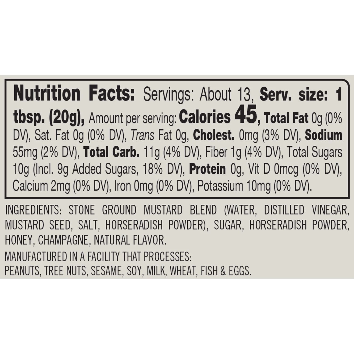 Sweet honey and spicy horseradish meet the brightness of champagne in a unique twist on honey mustard. Pair Champagne Honey Mustard with burgers and brats, pasta salad, or cheese boards.
