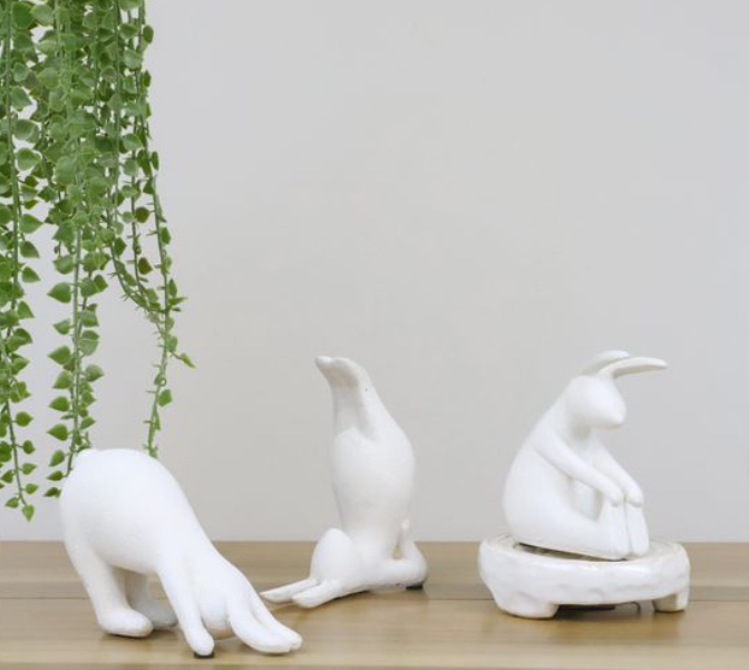 Bring a touch of whimsy to your space with these playful Yoga Bunnies resin figurines. Each bunny strikes a charming yoga pose, adding fun and calm to your décor. Perfect for animal lovers and yoga enthusiasts alike, these durable resin pieces brighten any shelf or desk with their lighthearted spirit. Stretch, smile, and relax with the delightful energy of Yoga Bunnies!