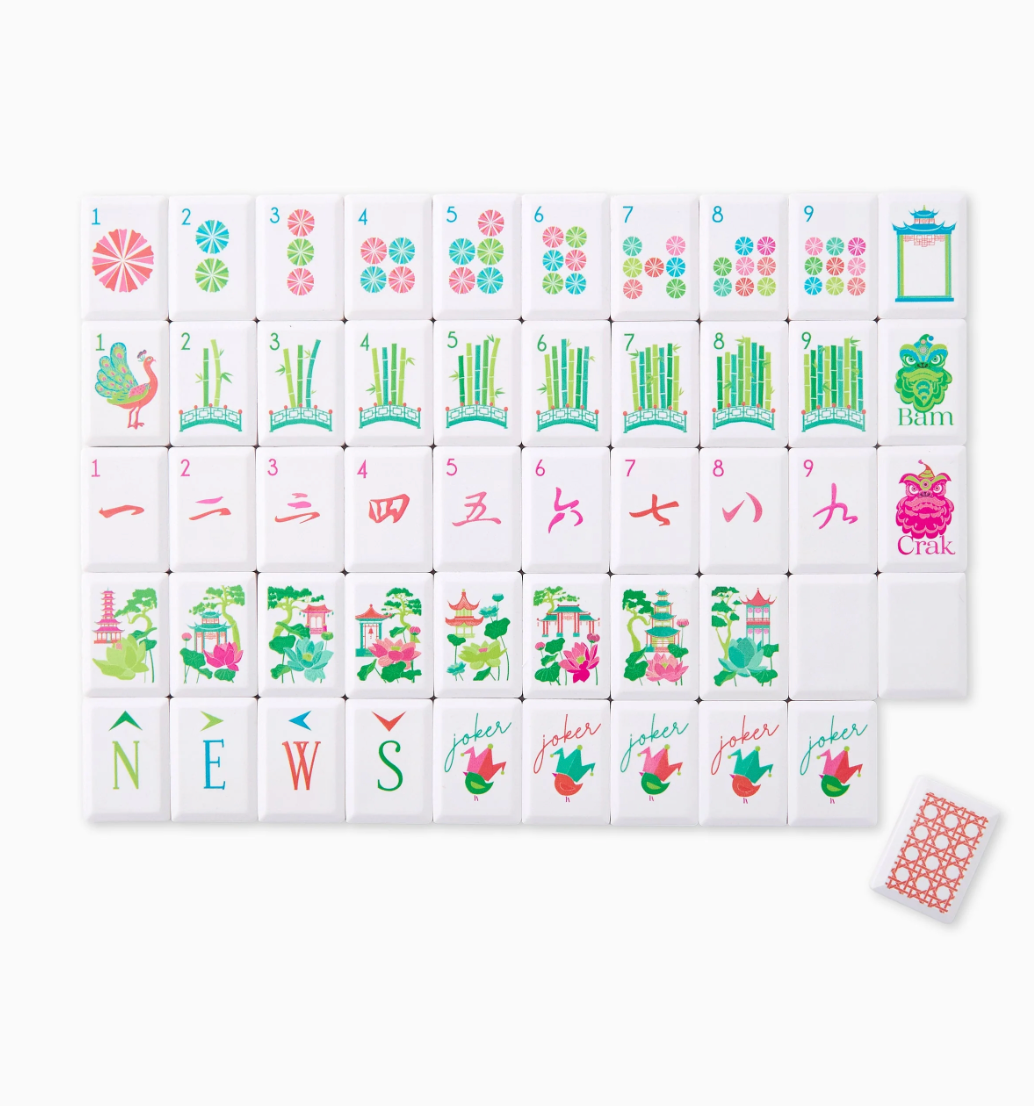 Whether you’re lounging poolside, hitting the beach, or taking Mahjong on the road, the Sunburst Mahjong Tile Set is as playful and bold as it is portable — and impossible not to love.