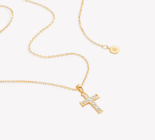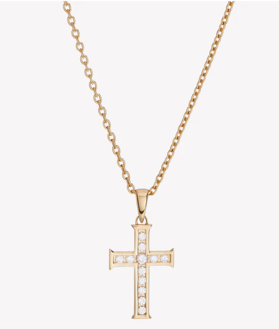 18k gold vermeil necklace featuring a sparkling cubic zirconia cross pendant, set on an adjustable 20" cable chain.