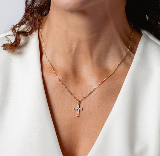 Inspired by Ephesians 5:8-9, the Luminous Cross Pendant Necklace radiates elegance and serves as a reminder to walk in the Lord's light. Featuring the iconic Rizen cross with flare detailing, twelve sparkling zirconia capture and reflect light with every movement, symbolizing faith and divine presence. Suspended from an adjustable cable chain, this exquisite pendant necklace is a testament to eternal devotion, illuminating your spirit and guiding you to live boldly in His light.