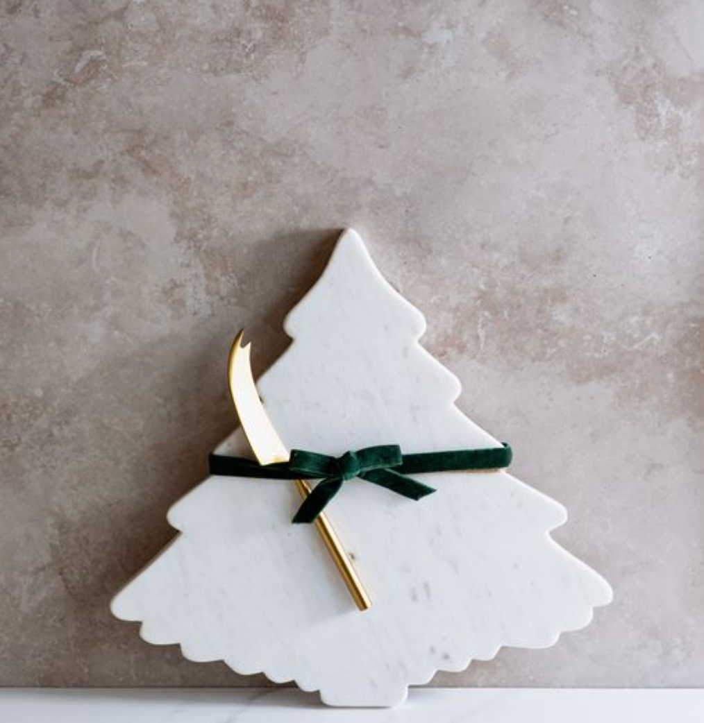 This 13-inch marble serving board shaped like a Christmas tree comes complete with a matching knife, perfect for stylishly presenting your holiday treats.