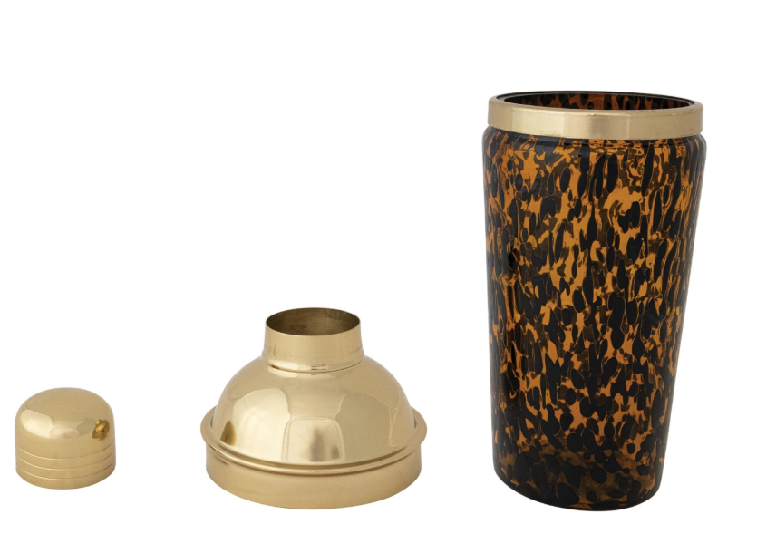 Confetti Glass Cocktail Shaker w/ Stainless Steel Top, Tortoise Shell & Gold Finish