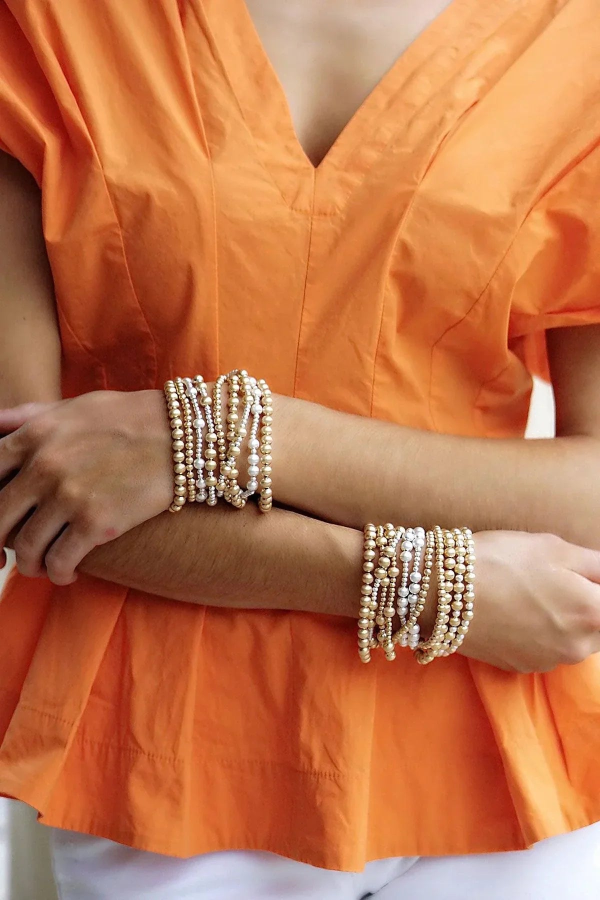 Add a touch of elegance to your outfit with our Jasper Ball Bead Stretch Bracelets in Satin Gold. Designed with a classic and timeless style, this set of two bracelets is the perfect accessory for any occasion. The satin finish gives it a subtle shine, making it a versatile piece for any jewelry collection.