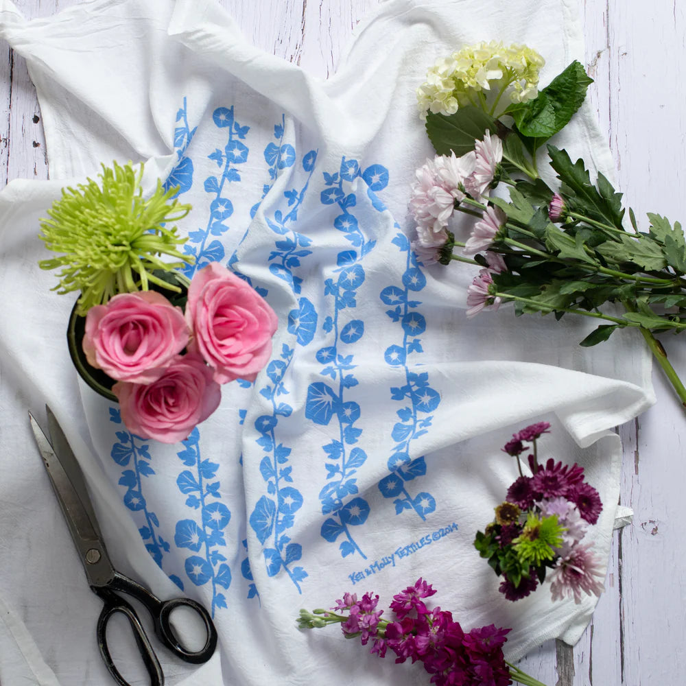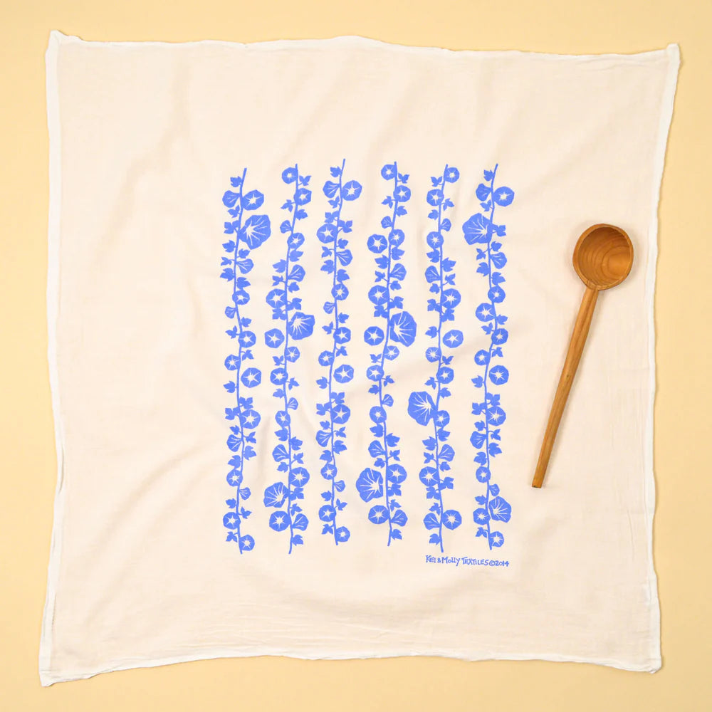 Even if you don't have a green thumb, Morning Glories grow easily and offer a gorgeous burst of color to your yard! They attract butterflies and hummingbirds and come in many varieties around the world. But don't sleep in too late, they tend to bloom in the morning and begin to fade in the heat of the day! This delicate and cheery flour sack dishtowel will add elegance and color to your kitchen and make the task of drying dishes a pleasure!
