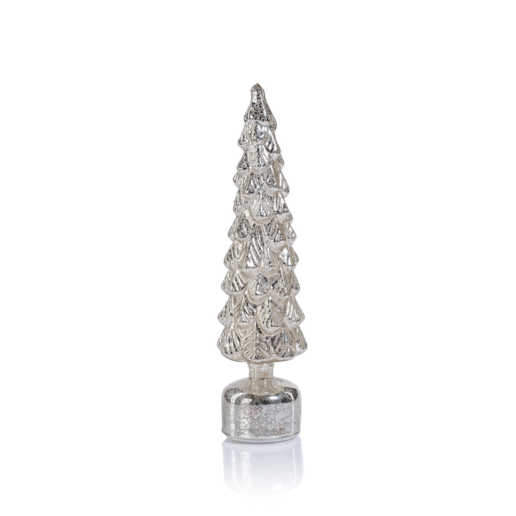 Illuminate your space with the 16.25” Antique Silver Mountain Pine Rotating LED Tree, combining elegant design with captivating motion for a festive glow.