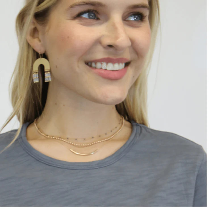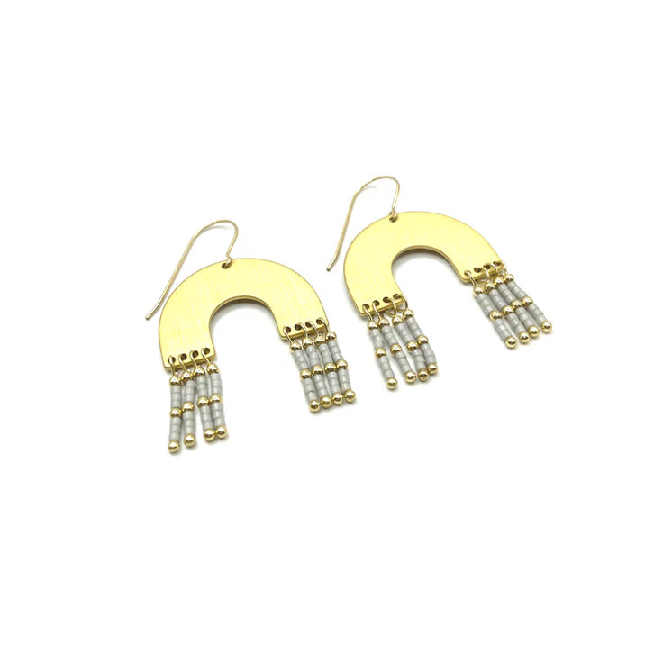 These eye-catching earrings feature a dangling design with tiny beaded fringe details.  Light and fun!