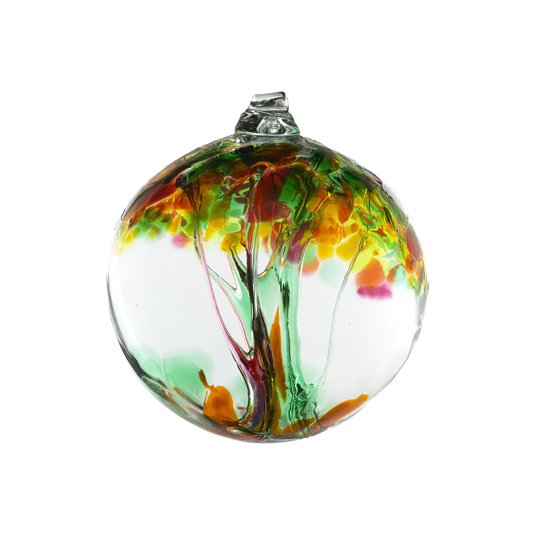 With colorful glass “leaves” branching over the orb's surface and “trunk” webbing sprouting up through the interior, each orb is magnificent.